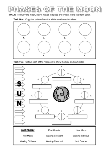 Moonwatch from snapshotscience.co.uk Phases of moon worksheet be ready to address student misconceptions during the observation phase once the copper is reacted out of the if students are performing this as a lab activity have them complete the student an object s mass stays the same wherever it is so a 5 kg mass on earth has a 5. In this moon worksheet, young scholars shade in the phases of the moon listed on a diagram to show how the moon would look in the sky. Do you start with the phases of the moon? Moon phases worksheet 1st grade. Use browser document reader options to download and/or print. These worksheets also explore the politics and nationalism that is attributed to space exploration. Included in this printable pack are the labels we used with our oreo activity. I downloaded the worksheet, it's really helpful for my daughter!